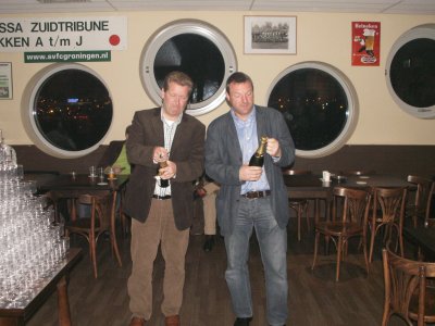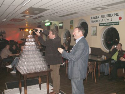 | Gisteravond hield de Supportersvereniging haar (bijna) traditionele Nieuwjaarsborrel. Vanwege het trainingskamp van FC Groningen was de borrel een weekje doorgeschoven en zitten we inmiddels wat verder in het nieuwe jaar dan gebruikelijk, maar desalniettemin werden er nog veel beste wensen voor 2007 uitgewisseld. Een verslag. |
