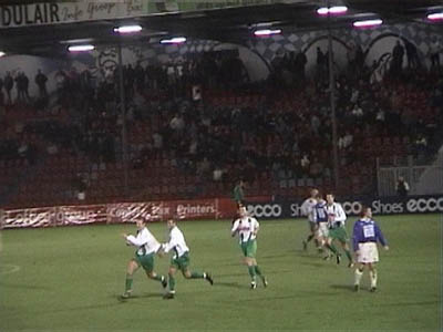 Deze wedstrijd is verboden voor FC Groningen-supporters, maar dat weerhoudt sommige supporters natuurlijk niet om toch heen te reizen. FC Groningen speelt goed en wint ruim met 1-4, mede dankzij een uitblinkende Curovic en Robben. En het is jammer dat maar weinig FC Groningen-supporters deze mooie overwinning konden zien. |