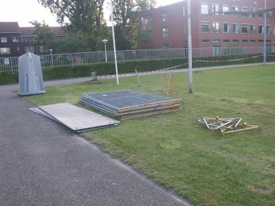 Op donderdag worden de dranghekken en de kantoorunits gebracht. |