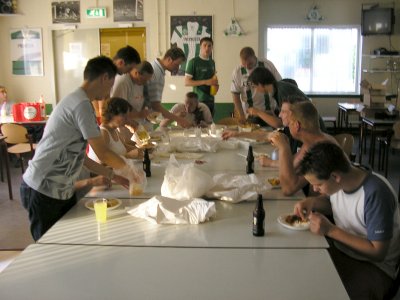 Zaterdagochtend: de vrijwilligers verzamelen in het Supportershome en gaan aan de slag. |