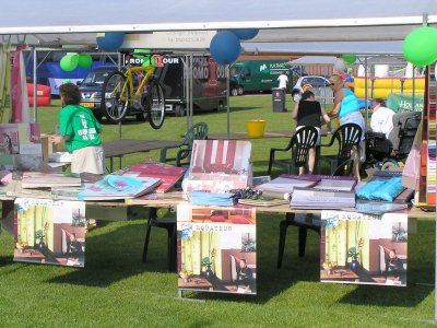 Op het trainingsveld wordt de laatste hand gelegd aan de inrichting van de kramen. |