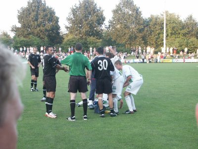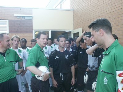 Op het veld van de vv Haren wordt het oefenduel tegen OFI Kreta afgewerkt. De Grieken hebben schwalbekoning Matglas in de gelederen en die laat nog eens zien dat hij inmiddels uitgerangeerd is. Na de goal van Matthijs beginnen de Grieken opeens te schoppen en te slaan en uiteindelijk mag één heethoofd vroegtijdig gaan douchen. Voor de rest vergeten we deze wedstrijd maar snel. |
