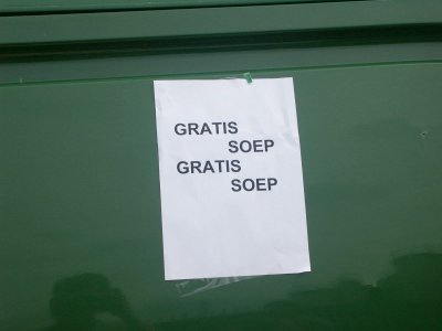 De eerste ervaring in het uitvak is meteen goed: net als vorig seizoen wordt er gratis soep uitgedeeld. |