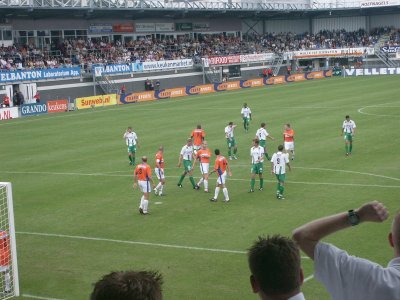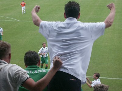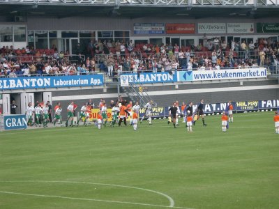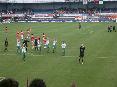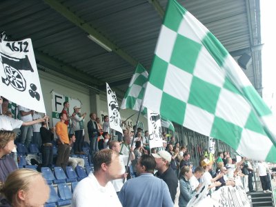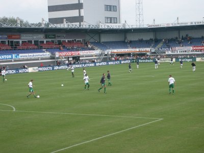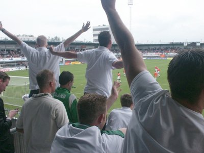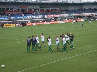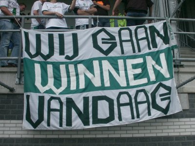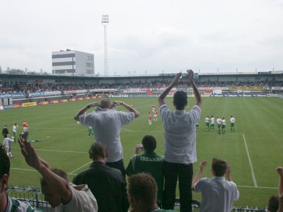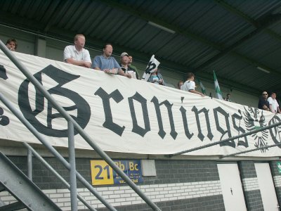 Zo'n 100 supporters reizen mee naar Roosendaal om daar de tweede uitwedstrijd van het seizoen mee te maken. FC Groningen speelt helaas niet goed, maar RBC Roosendaal gelukkig ook niet. Tuinkabouter Ikedia zet de Brabanders tweemaal op voorsprong, maar routiniers Drent en Hugo brengen de stand weer in evenwicht. Op het laatst kan RBC nog de volle winst pakken, maar de Groningers houden stand en nemen een zwaarbevochten punt mee in de tas. |