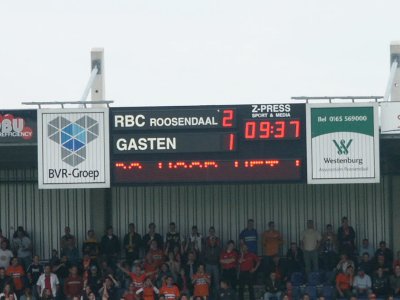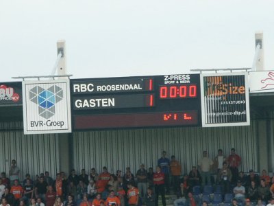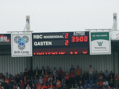 Het scorebord in Roosendaal werkt niet. |