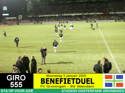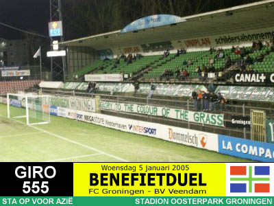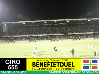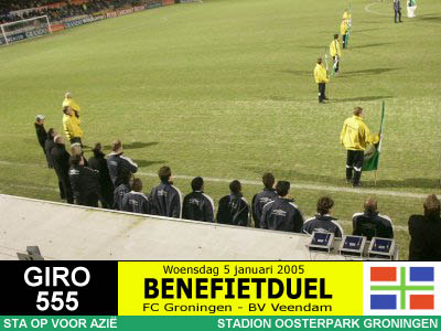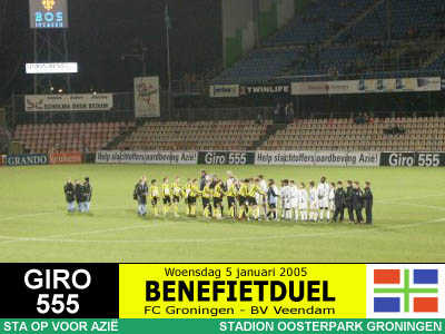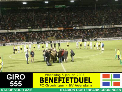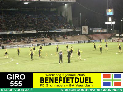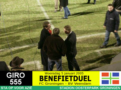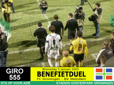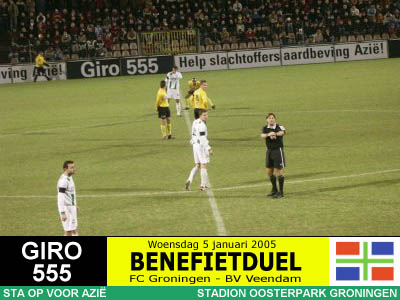 Op initiatief van RTV Noord-journalist Jan van der Veen spelen de twee Groningse BVO's een benefietduel ten behoeve van de slachtoffers van de zeebeving in Azië. Het wordt een daverend succes want er komen maar liefst 10.447 toeschouwers en er wordt 150.000 Euro (!) opgehaald, net zoveel als de actie van de drie topclubs bij elkaar. Er gaat niets boven Groningen! |