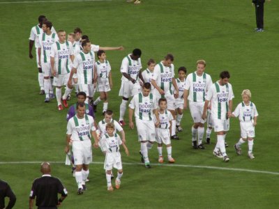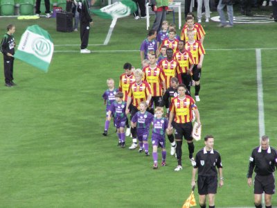 De eerste meegereisde KV Mechelen-fans nemen plaats in het uitvak. |