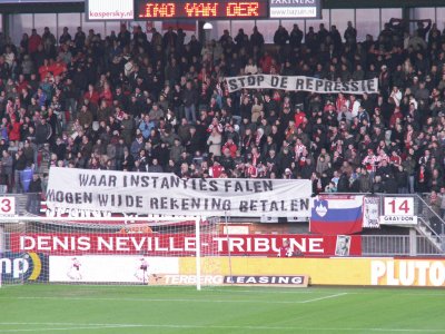 Ook Spartanen zijn daar zat van: "Waar instanties falen, mogen wij de rekening betalen" en "Stop de repressie". |