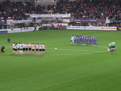 Een minuut stilte ter nagedachtenis aan oer-Spartaan Jan Nijman, scout en oud-trainer van Sparta 2. |