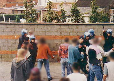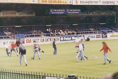 Bij de relletjes werden ook winkelramen ingegooid. De Belgische Rijkswacht voerde een charge uit en hield een groep van ongeveer dertig hooligans aan. Vijf raddraaiers werden verhoord op het politiebureau. Eén van hen was een Belg, een aanhanger van Beerschot. Later werden zij weer vrijgelaten en samen met hun kornuiten in twee bussen de grens overgezet. In het Freethielstadion van Beveren moest de Rijkswacht nogmaals in actie komen. Vlak voor aanvang van de wedstrijd klommen aanhangers van FC Groningen over de hekken en bezetten het veld. Na een nieuwe charge keerde de rust terug. (bron: NvhN, 16 juli 1995)
