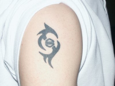 Paul stuurde een foto van zijn tattoo op z'n schouderblad. |